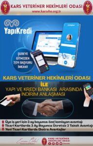 Kars Veteriner Hekimleri Odası olarak, üyelerimizin ticari ve bireysel finansal işlemlerinde avantajlar sağlamak hedefiyle Yapı Kredi Bankası ile özel bir işbirliği protokolü imzalanmıştır.