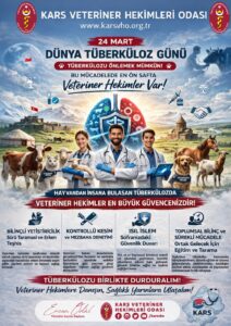 1882 yılında Robert Koch’un Mycobacterium tuberculosis bakterisini keşfettiği gün olan 24 Mart, Dünya Sağlık Örgütü tarafından toplumsal farkındalığı artırmak amacıyla “Dünya Tüberküloz Günü” olarak kabul edilmiştir. Kars Veteriner Hekimleri Odası olarak, insan ve hayvan sağlığının birbirinden ayrılamaz bir bütün olduğu gerçeğinden hareketle, bu anlamlı günde hayvansal kökenli tüberküloz riskine dikkat çekmek istiyoruz.