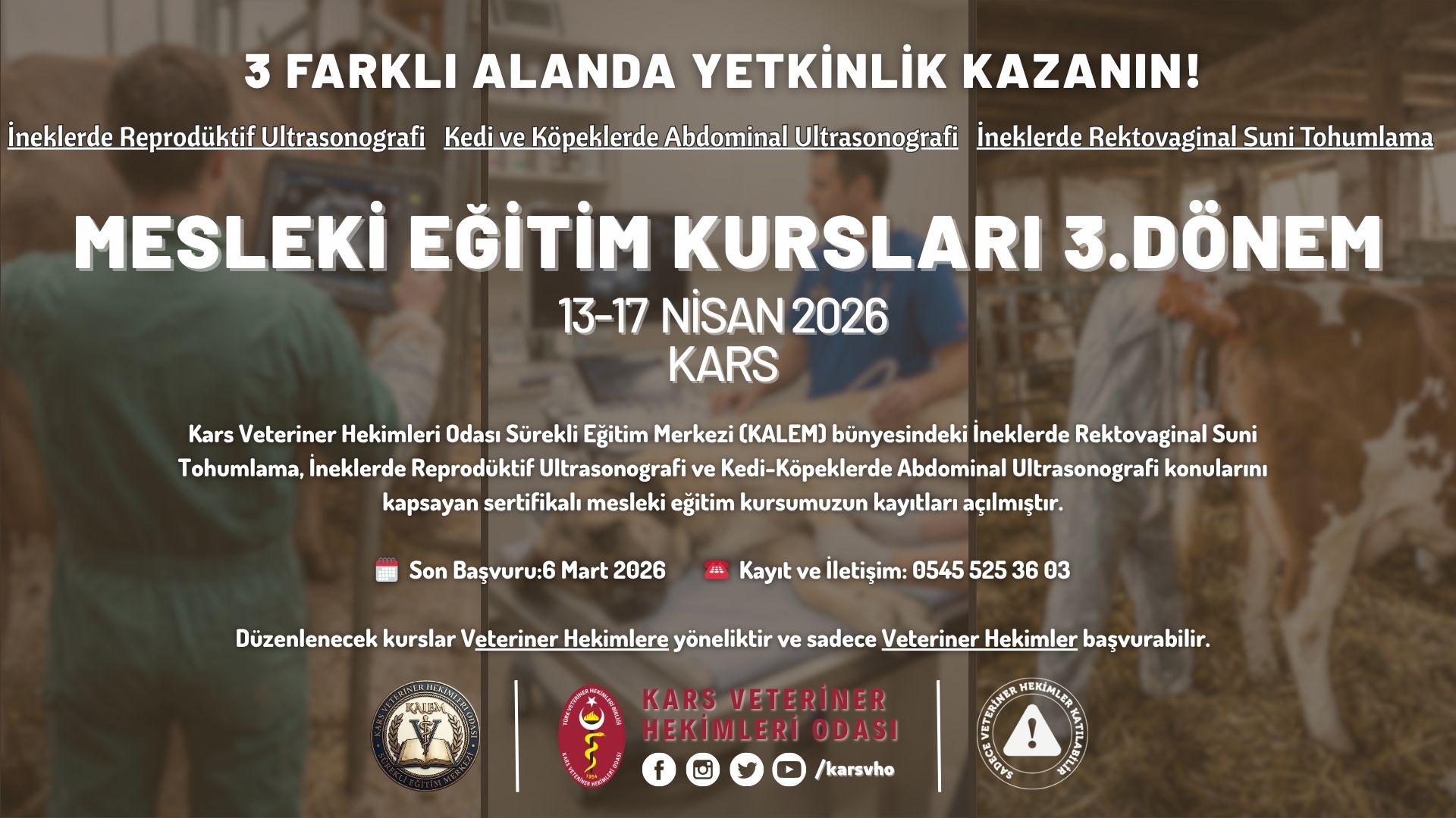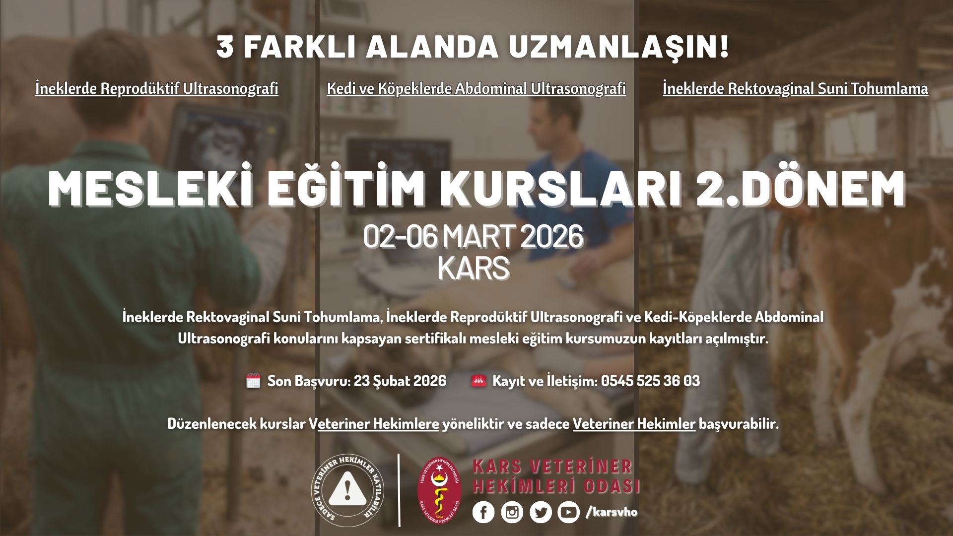Kars Veteriner Hekimleri Odası olarak, “Tek Sağlık” vizyonuyla geride bıraktığımız 2025 yılında gerçekleştirdiğimiz tüm çalışmaları, projeleri ve etkinlikleri siz değerli meslektaşlarımız ve kamuoyuyla paylaşıyoruz.