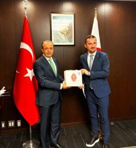 Sayın Büyükelçi Oğuzhan Ertuğrul’un kıymetli görüş ve önerileri dikkatle not edilirken, ziyaret sonunda Türkiye’den getirilen kurumsal hediyeler kendilerine takdim edildi.